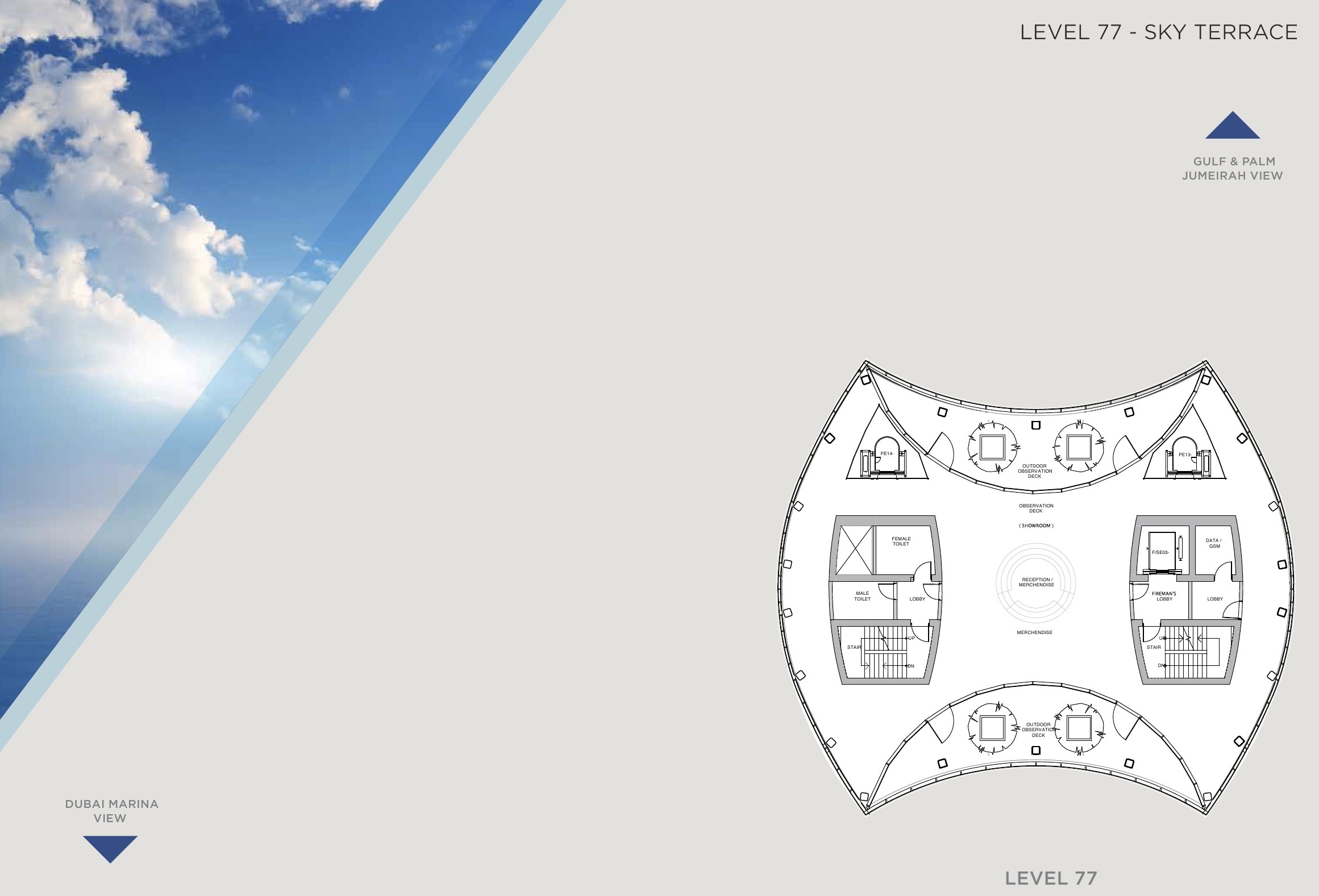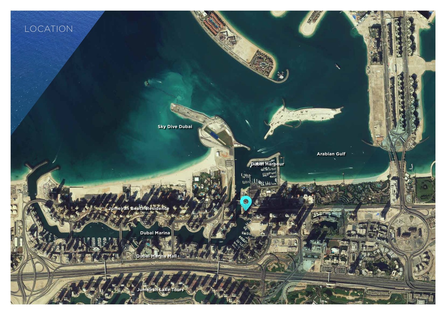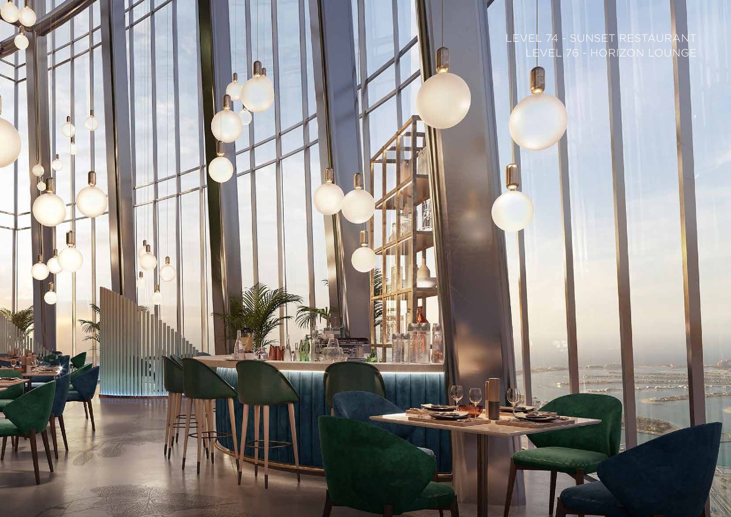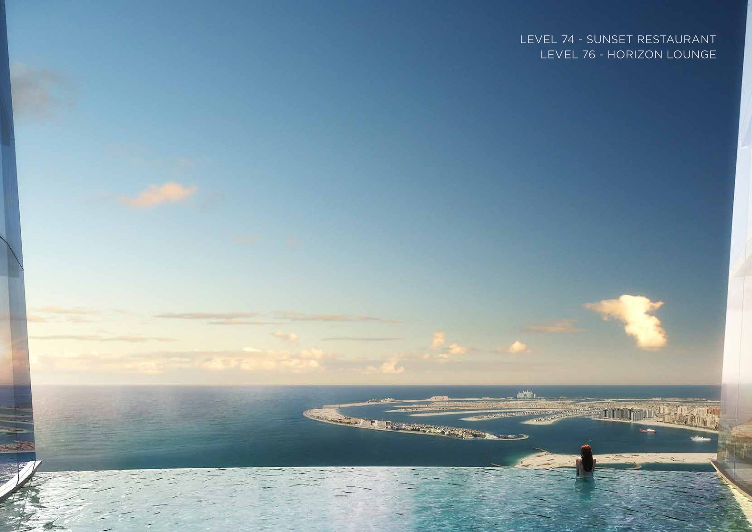 - Panoramic views of Palm Jumeirah, Bluewaters Island, Dubai Harbour and the Arabian Gulf