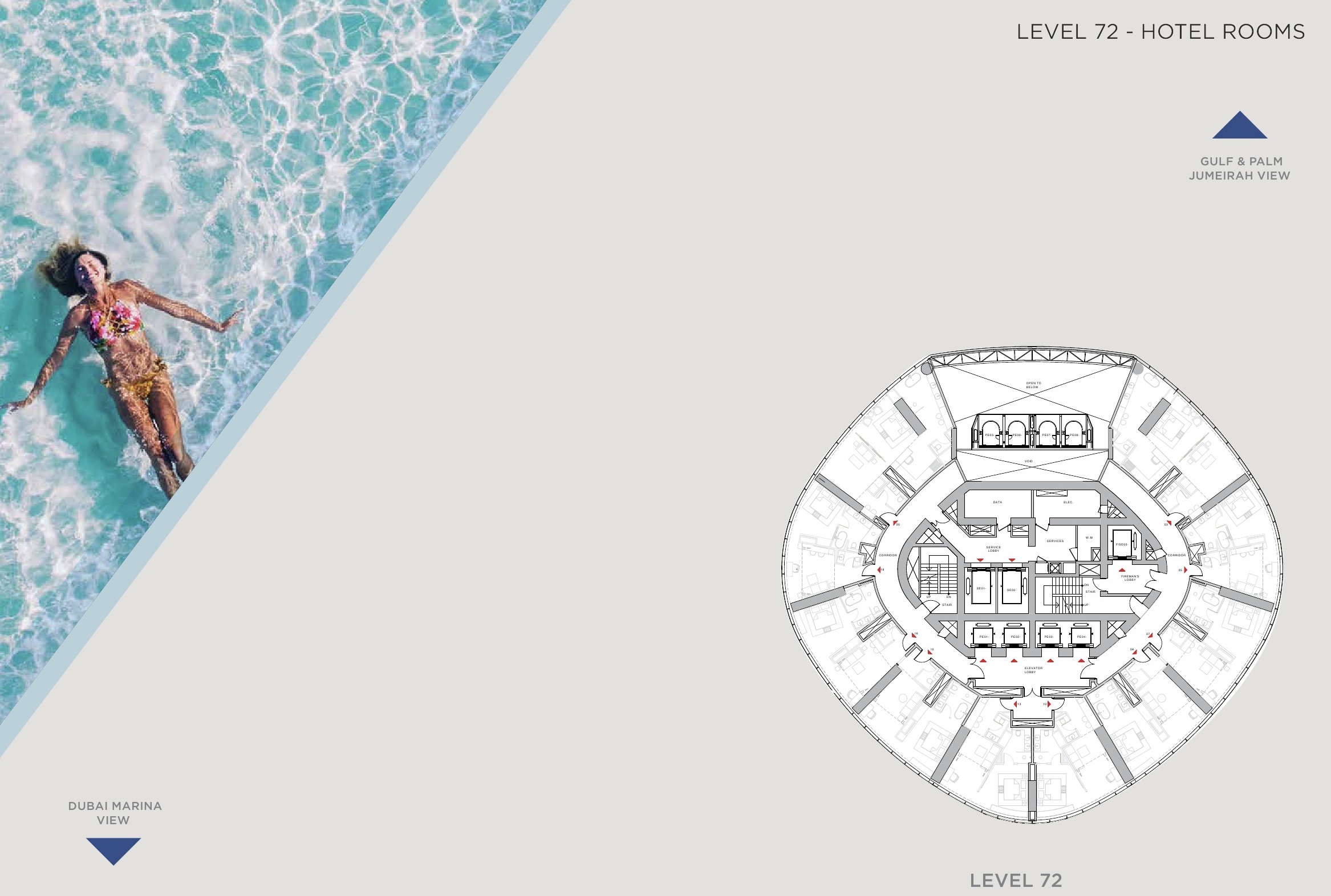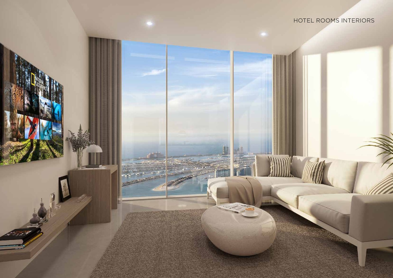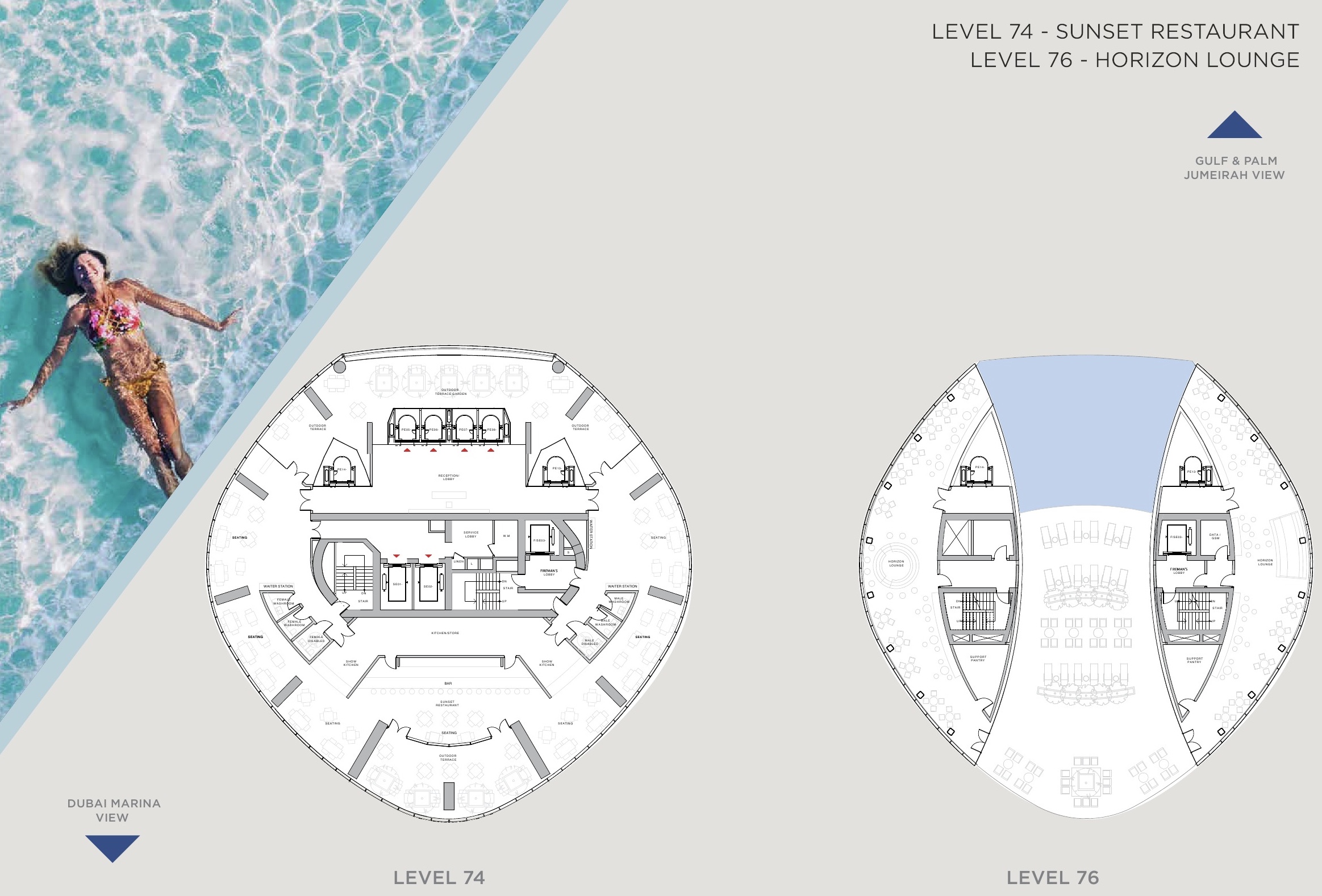 - Panoramic views of Palm Jumeirah, Bluewaters Island, Dubai Harbour and the Arabian Gulf