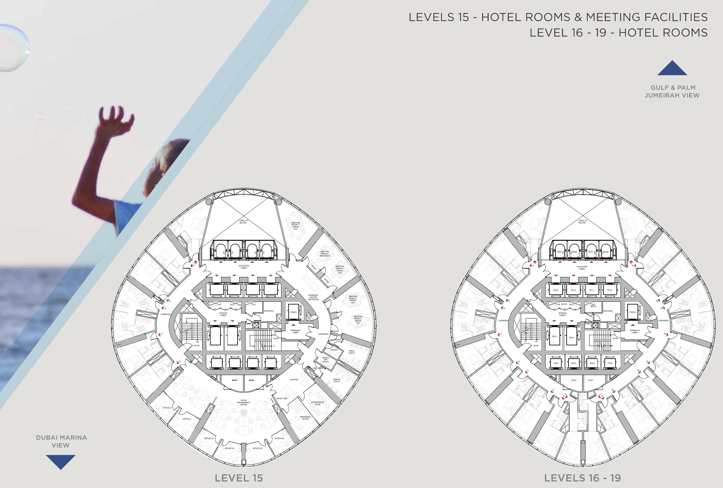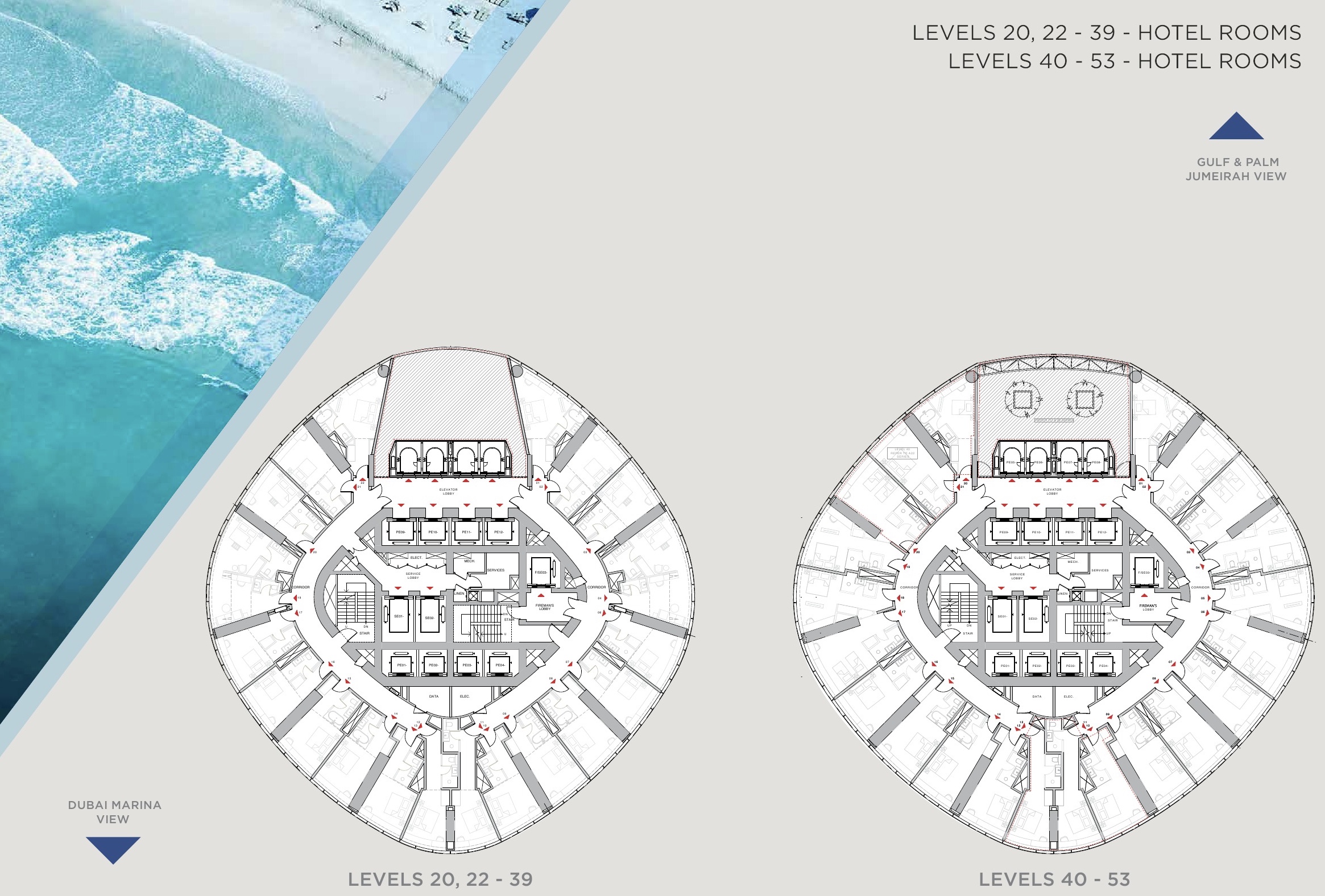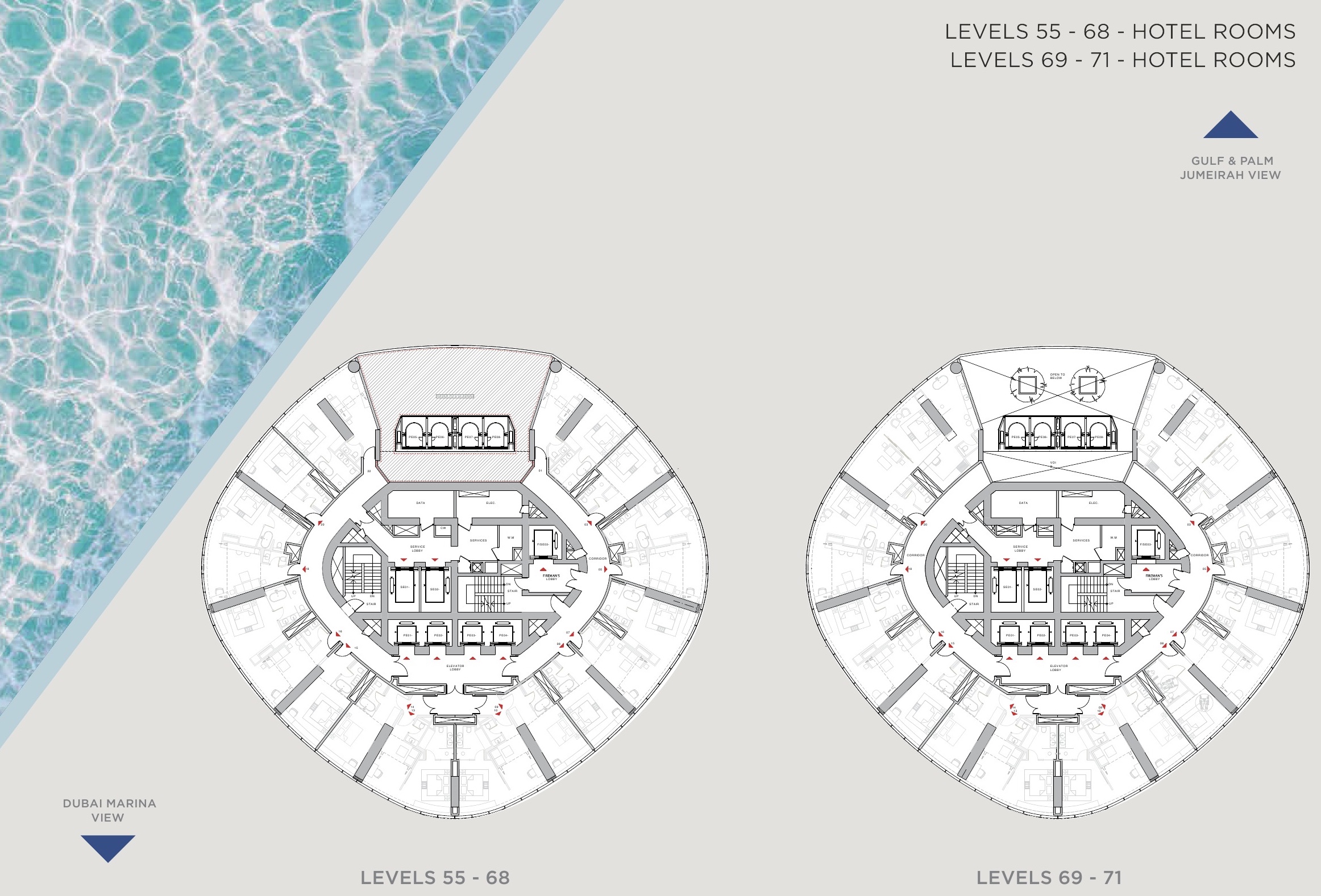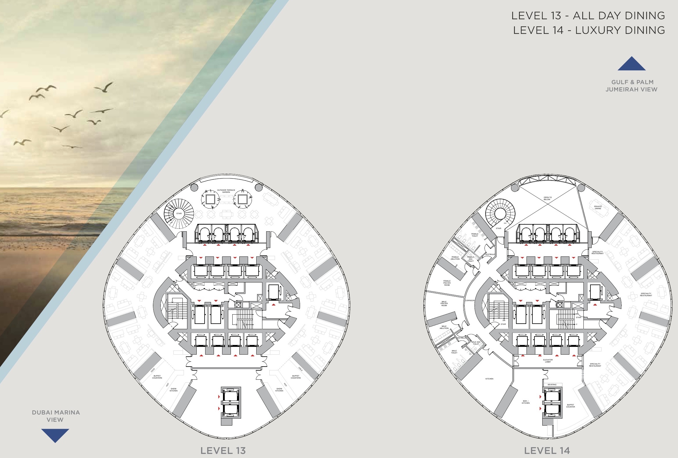 - Panoramic views of Palm Jumeirah, Bluewaters Island, Dubai Harbour and the Arabian Gulf