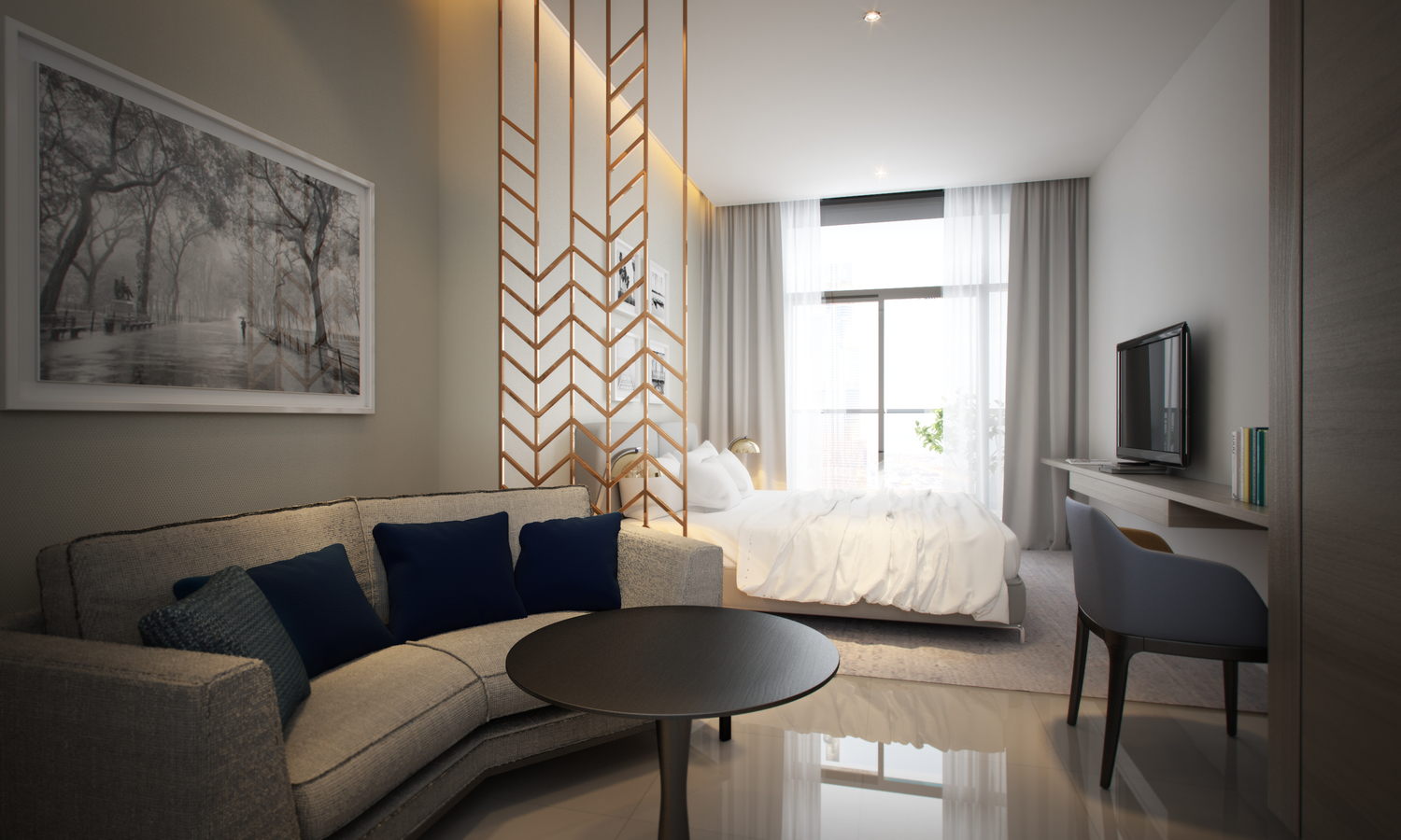 - Double bed with mattress in studio & 1 bedroom apartments