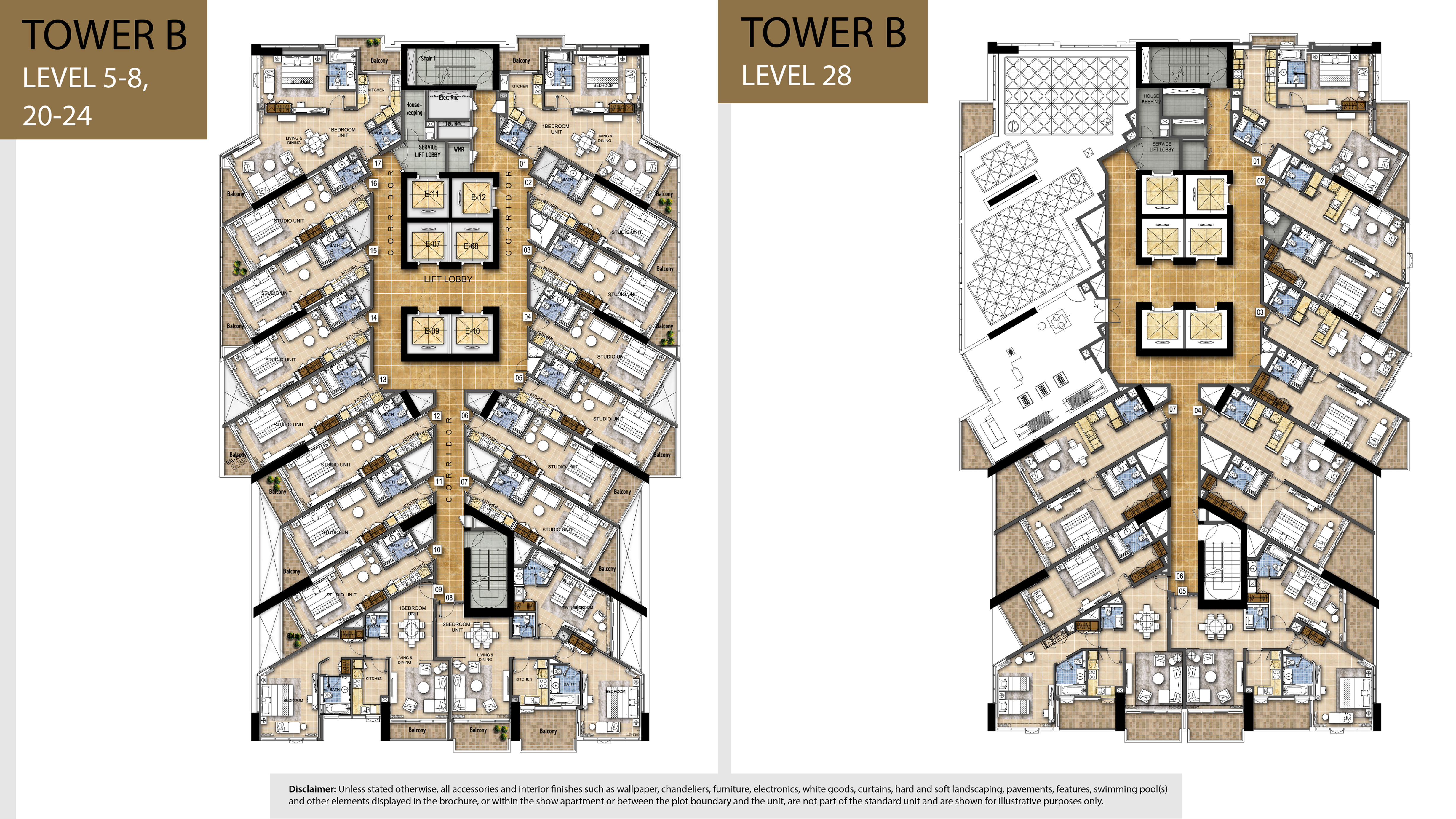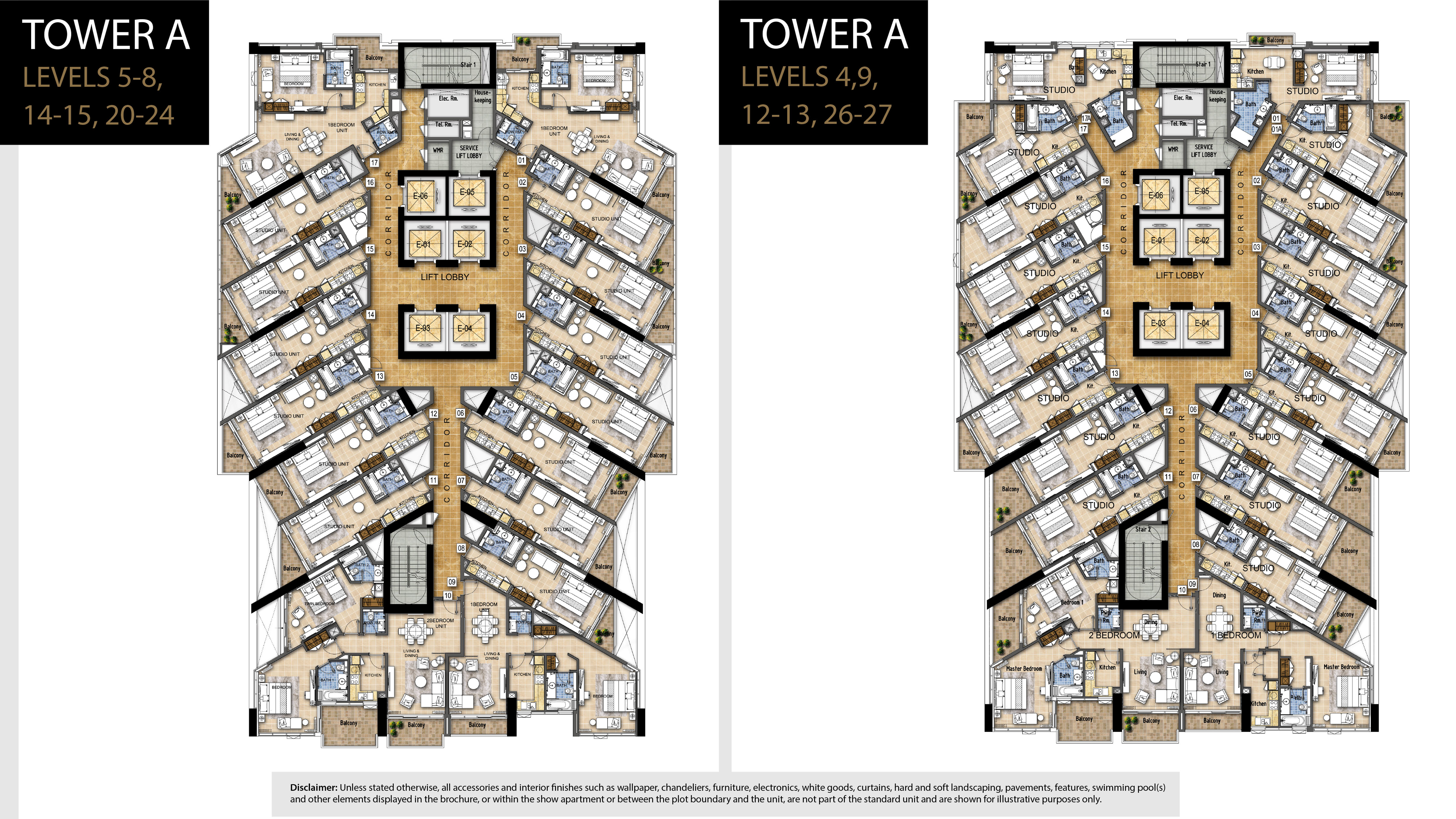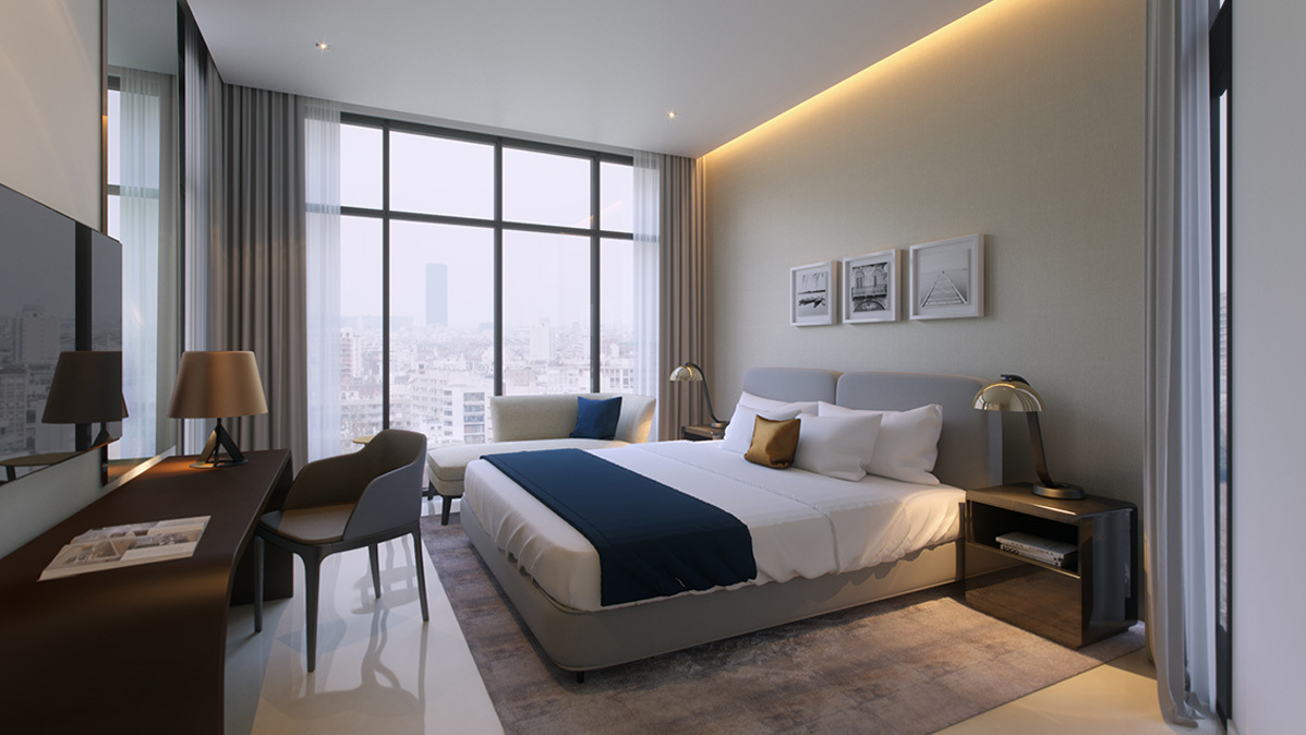 - Double bed with mattress in studio & 1 bedroom apartments